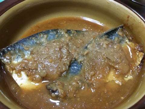 ⑤ ③に④を入れて、落としぶたをして更に煮込んでいきます。ある程度煮込んだら、落としぶたを外して煮汁を鯖の表面にかけていきながら煮汁にトロミがつくまで煮詰めていくと出来上がりです。
